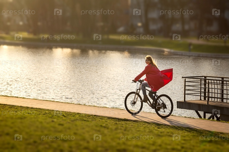 Девушка едет на велосипеде