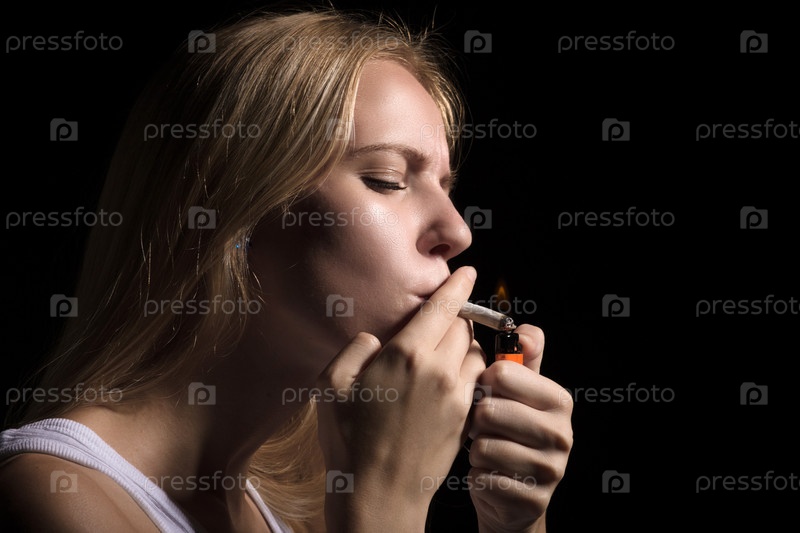 Женщина курит косяк