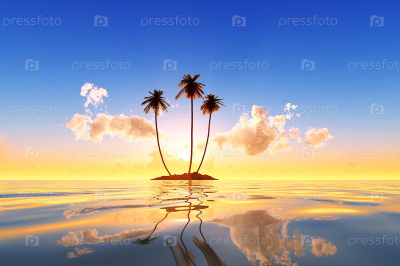 Остров на розовом закате