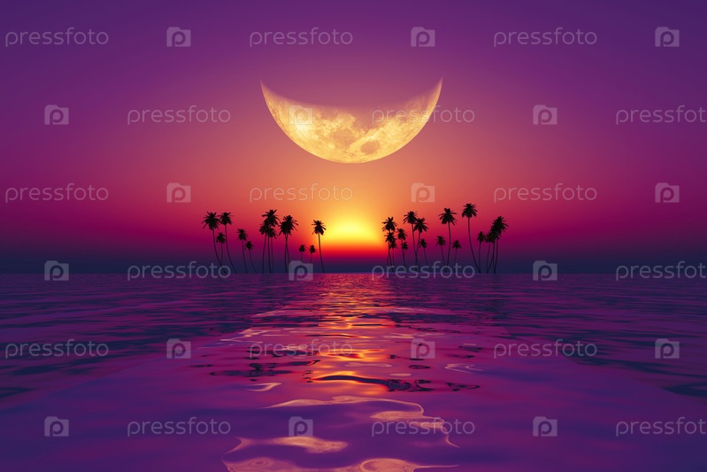 Большая луна над фиолетовым закатом