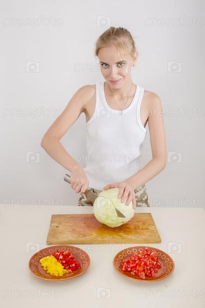 Женщина режет капусту