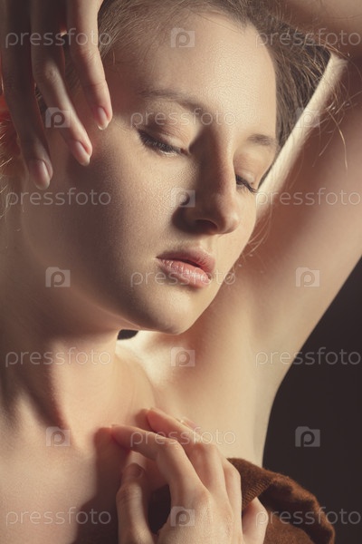 Молодая чувственная женщина топлесс с закрытыми глазами