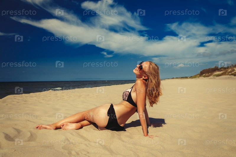 Красивая девушка загорает