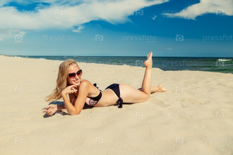 Красивая девушка загорает