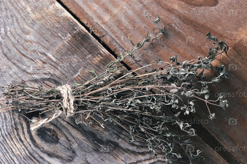 Пучок сушеных трав - тимьян, перевязанный ниткой