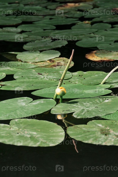 Кувшинка с листьями в пруду