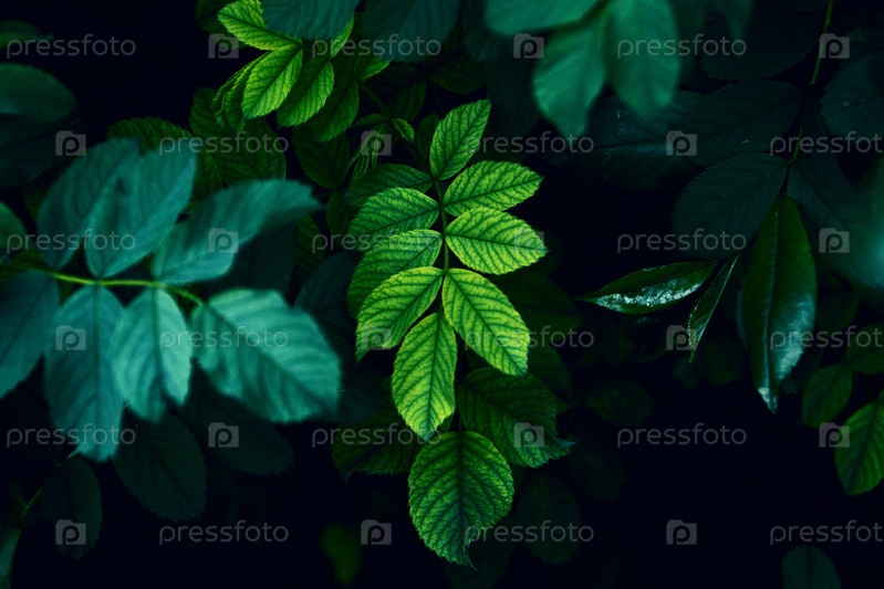 Темно-зеленые листья крупным планом, фон шаблона природы, выборочный фокус