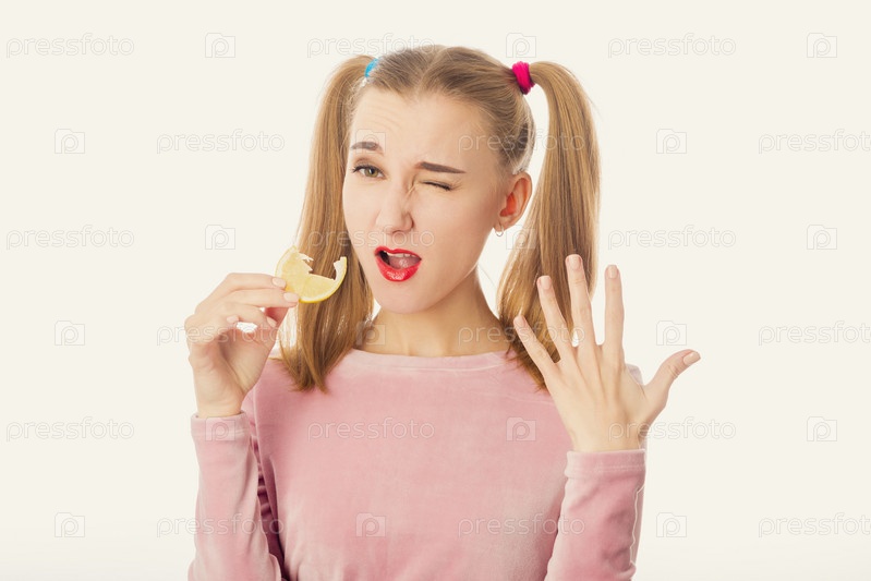 Девушка ест лимон