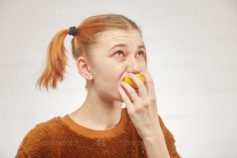 Девушка ест лимон