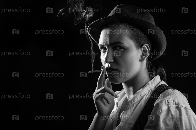 Женщина курит сигарету