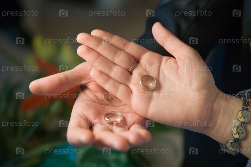 Свадьба. Руки новобрачных держат кольца