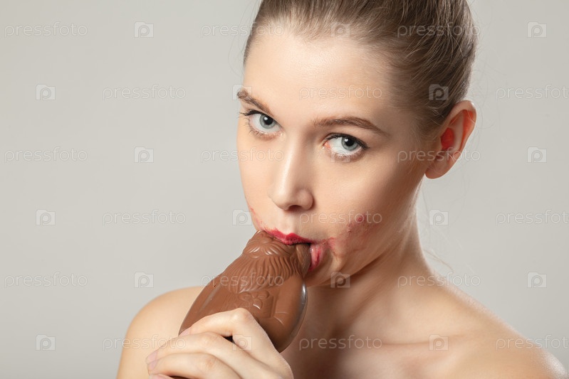 Женщина ест шоколад