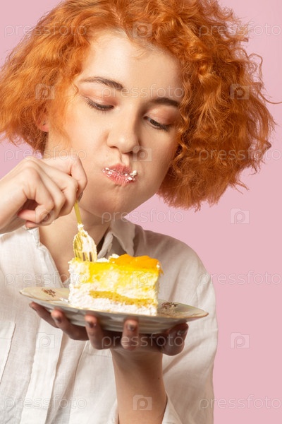 Девушка ест десерт
