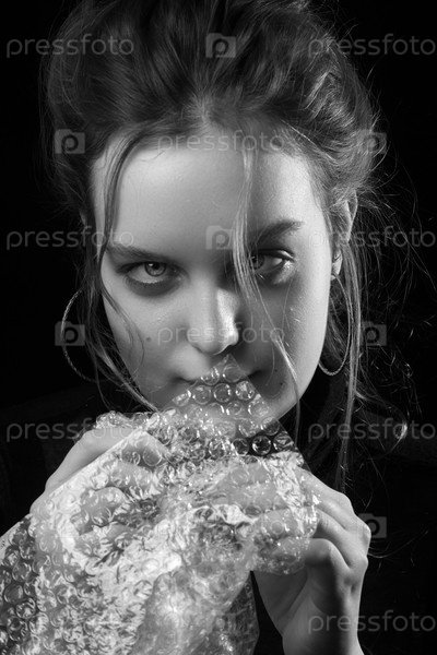 Женщина лопает мыльные пузыри