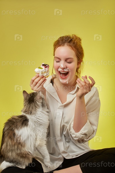 Девушка ест десерт