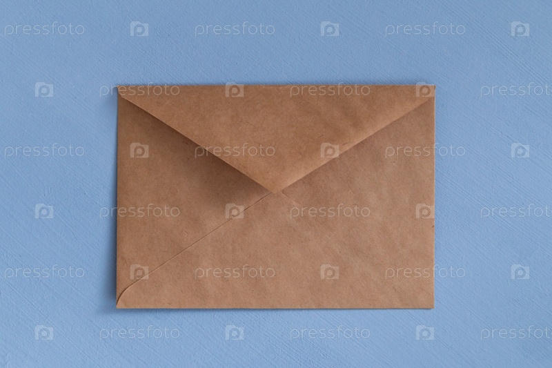 Пустой бумажный конверт на голубом фоне
