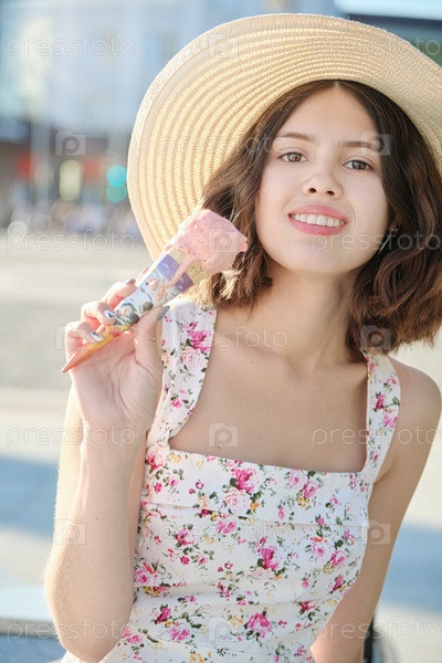 Девушка ест мороженое