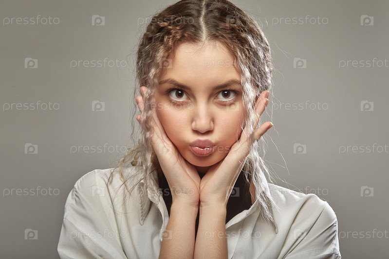 Веселая женщина гримасничает