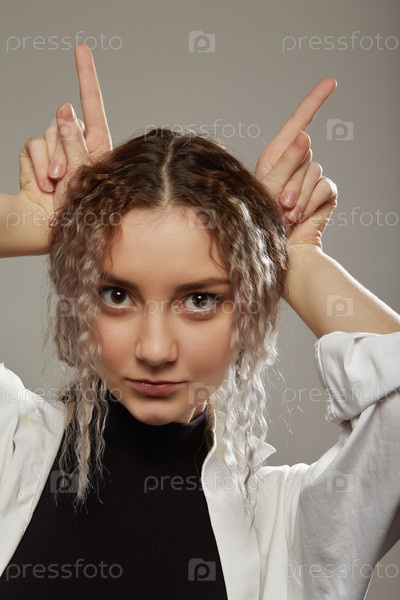 Девушка показывает рога