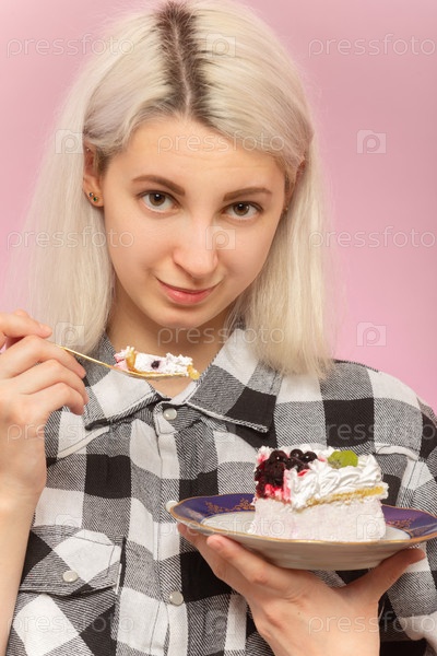 Девушка ест десерт