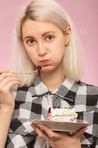 Девушка ест десерт