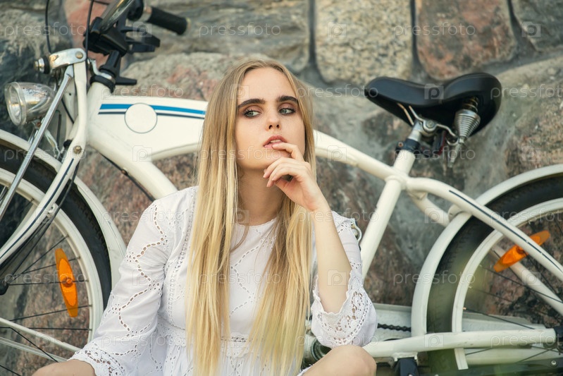 Милая блондинка с велосипедом