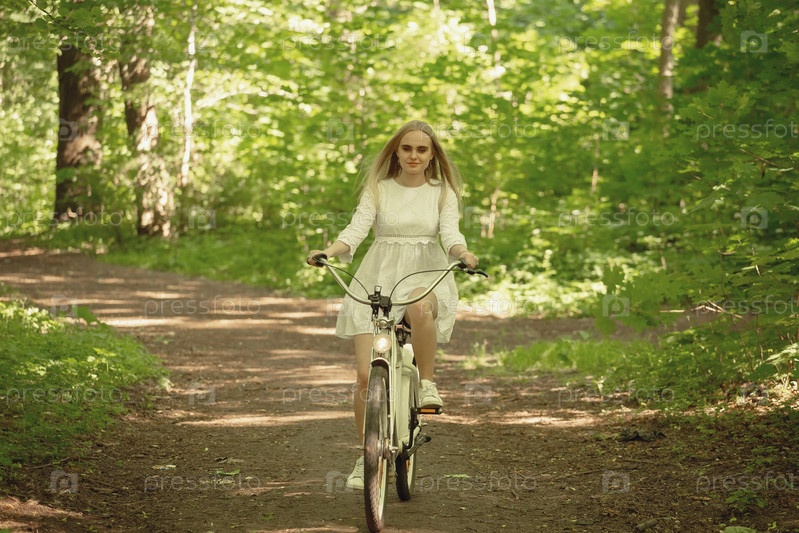Милая блондинка с велосипедом