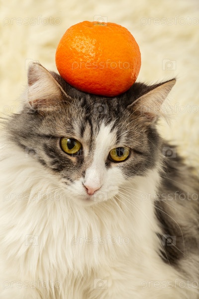 Кошка с мандарином
