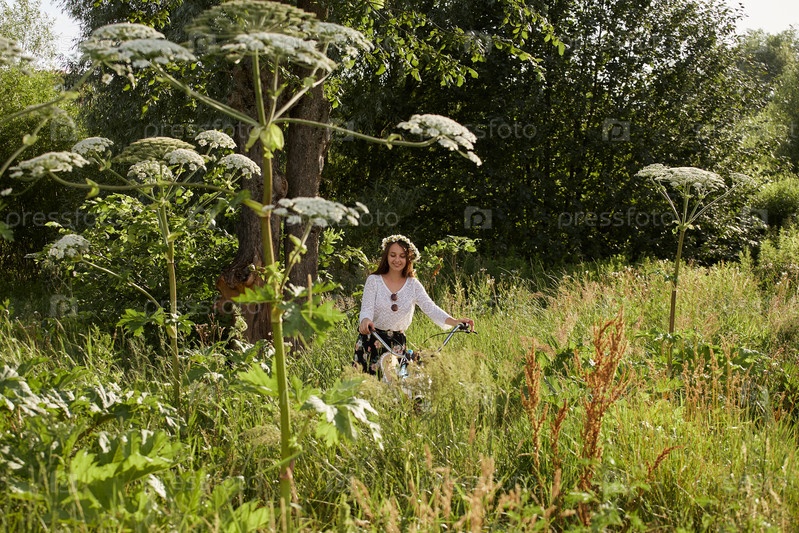 Молодая женщина велосипедист