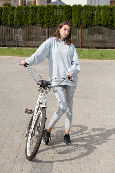 Молодая женщина велосипедист
