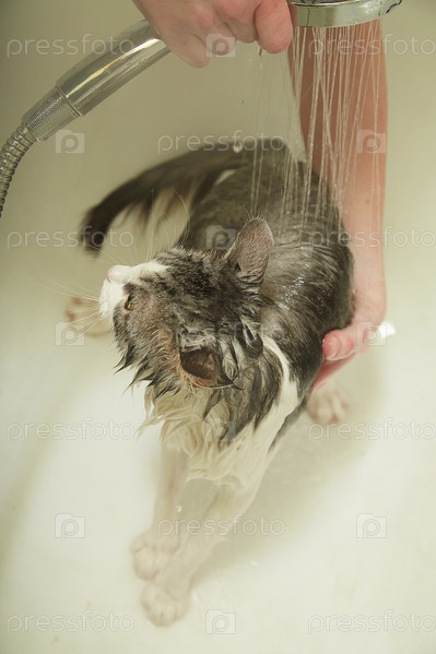 Женщина стирает кошку