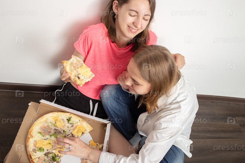 Девочки едят пиццу