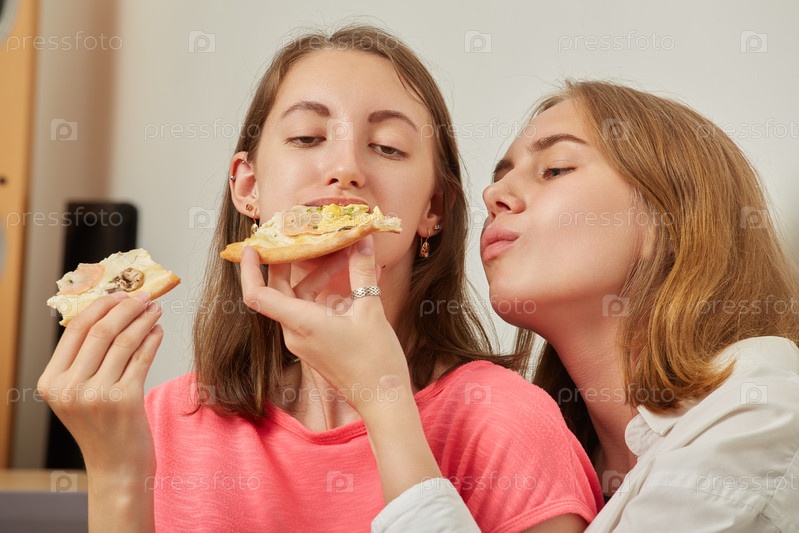 Девочки едят пиццу