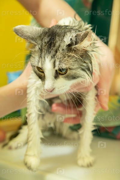 Женщина стирает кошку