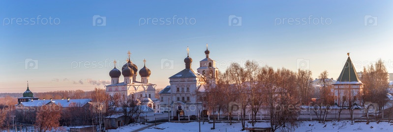 Вид на Успенский Трифонов монастырь в Кирове зимним вечером