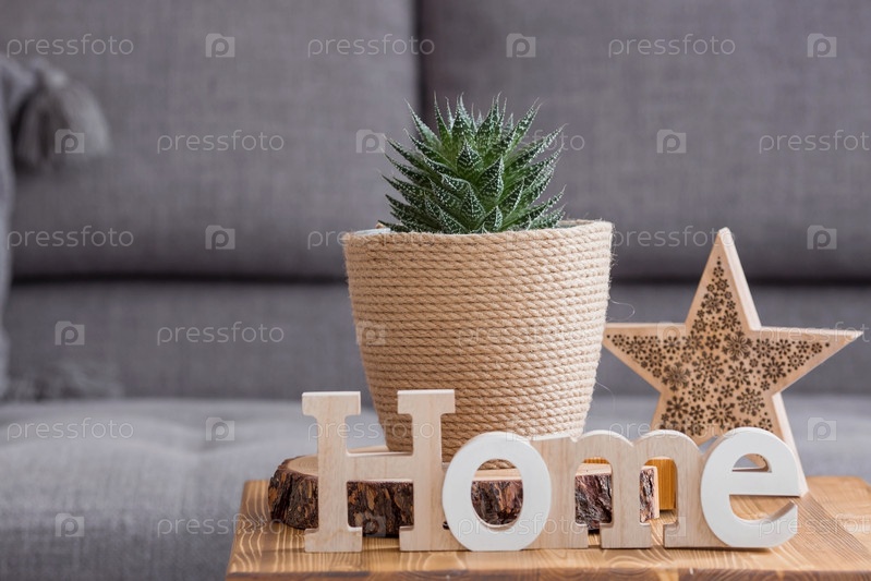 Садоводство, домашнее хозяйство и растениеводство. Многие комнатные растения растут в цветочных горшках в интерьере комнаты. Уход за цветком