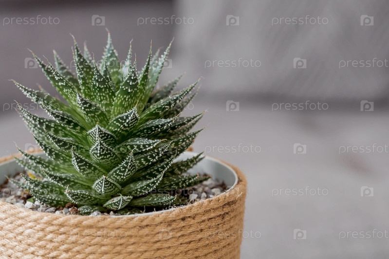 Садоводство, домашнее хозяйство и растениеводство. Многие комнатные растения растут в цветочных горшках в интерьере комнаты. Уход за цветком