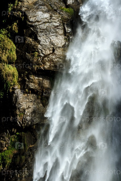 Каскад водопада, естественный водный фон. Красивая детальная текстура проточной воды и мокрого камня