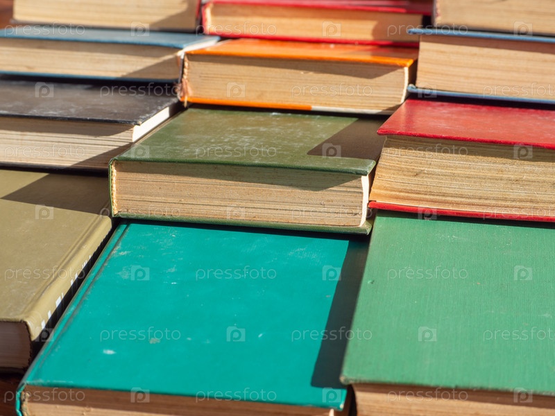 Пыльные старые книги в твердом переплете сложены рядами на столе. Фоновая текстура книги