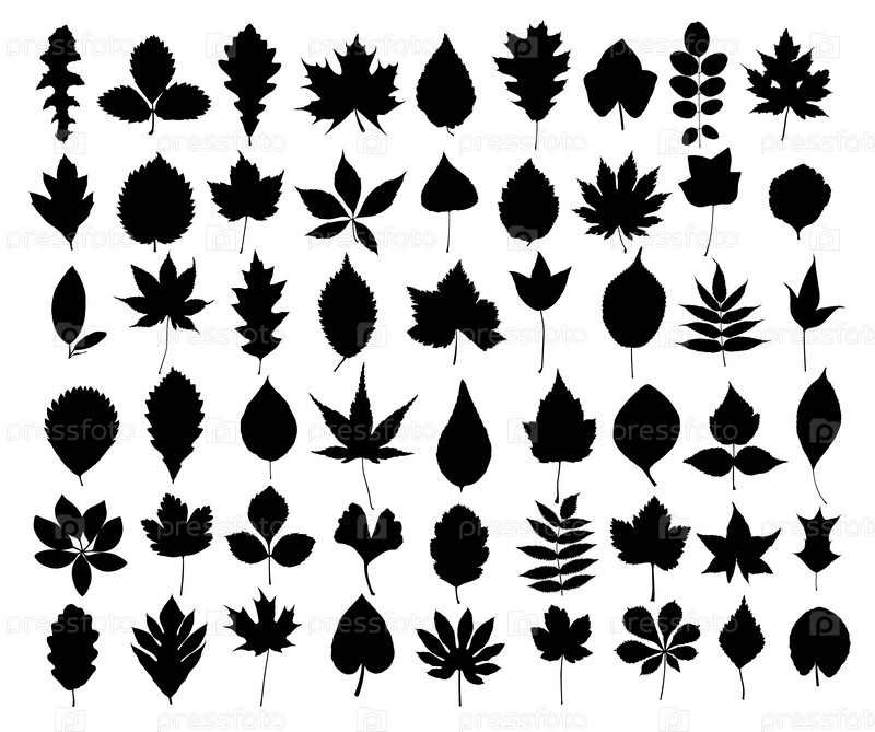 Набор силуэтов листьев деревьев и кустарников