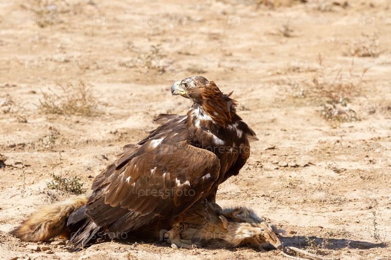 Беркут на охоте в степи, Кыргызстан