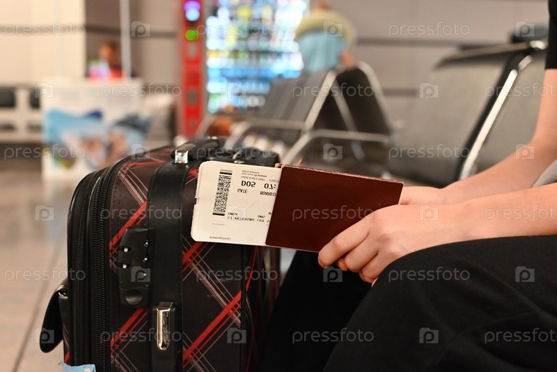Закрытие лица с паспортами и посадочным талоном в аэропорту