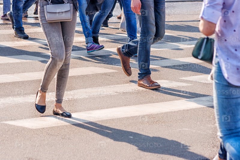 Ноги пешеходов идущих через дорогу, пешеходный переход