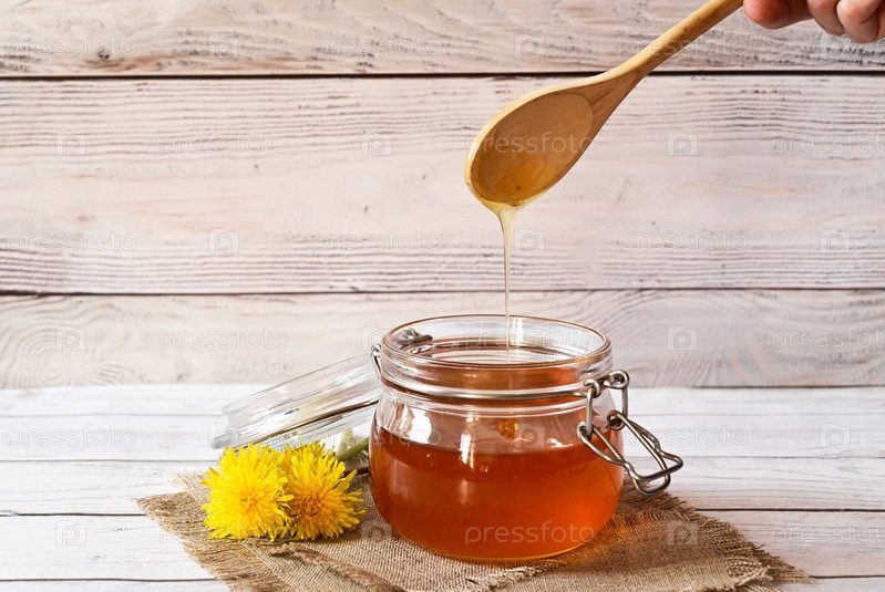 Варенье из одуванчиков в стеклянной банке. Концепция здоровья. Жизнь без холестерина