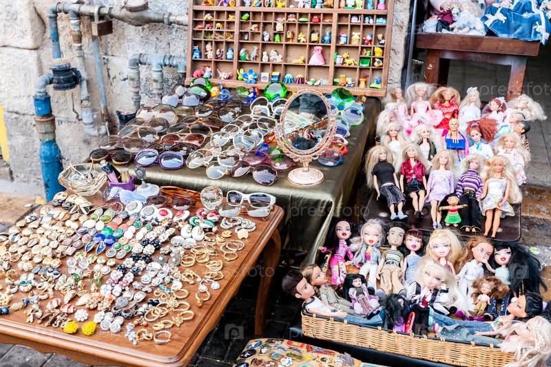 Старые вещи для продажи на блошином рынке в старом городе Яффо, Тель-Авив, Израиль