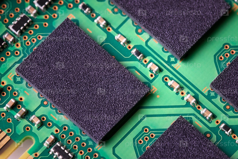 Макросъемка чипа памяти компьютера или ноутбука. Электронная плата. Оперативная память