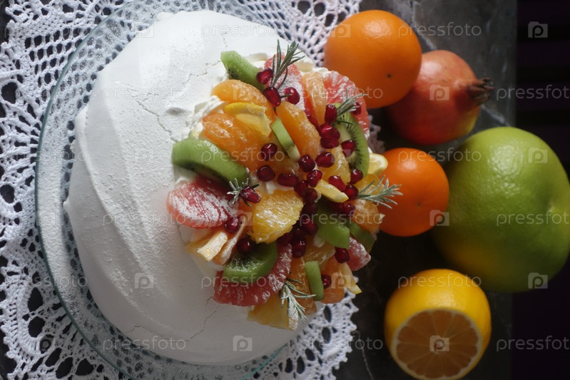 Торт Павлова со взбитыми сливками в зимнем варианте