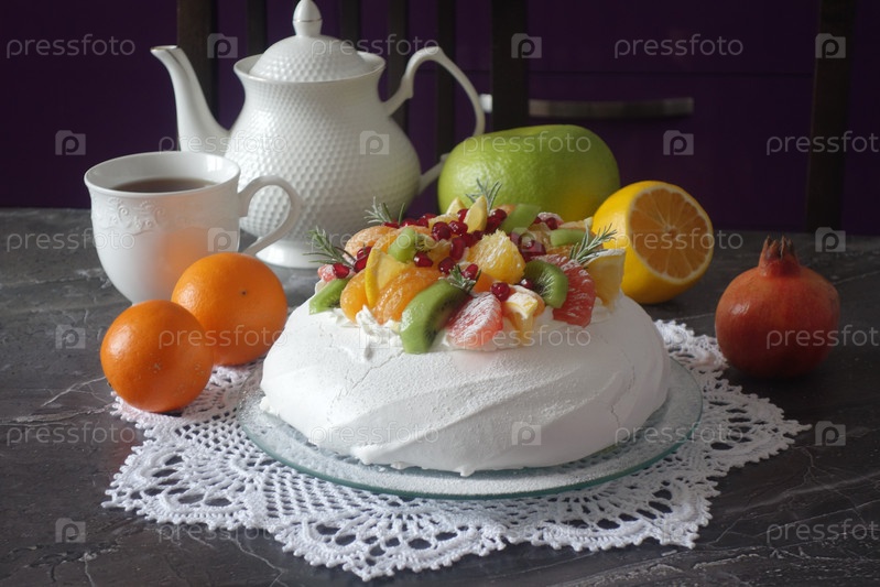 Торт Павлова со взбитыми сливками в зимнем варианте
