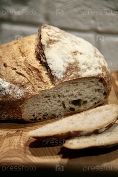 Круглая буханка домашнего хлеба на деревянной доске