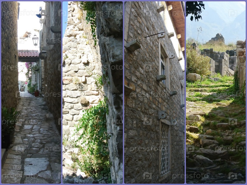 Фотоколлаж путешествие по Черногории, руины крепости Старый Бар